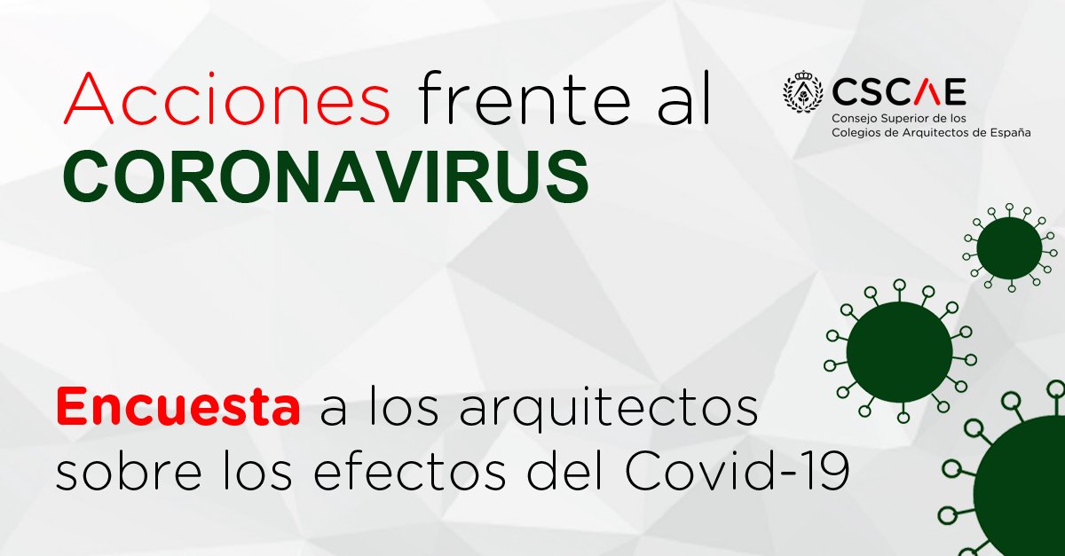 ¿Cómo está afectando el COVID-19 a tu ejercicio profesional? ¿Cuántas obras se han visto paralizadas? ¿Cuántos proyectos has cancelado ¿Cómo te está afectando a nivel personal? Preguntas como estas integran la encuesta que los Colegios de Arquitectos han preparado, en coordinación con el CSCAE, para conocer el impacto real de la crisis sanitaria, económica y social derivada del coronavirus en los profesionales de la Arquitectura en nuestro país.